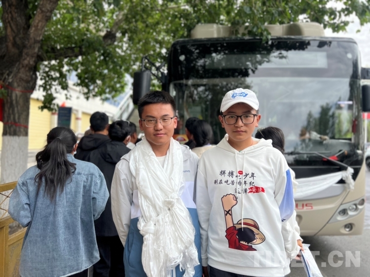 圖為張錦陽和陳思杰結(jié)束考試后在考場(chǎng)外合影留念 攝影:德吉卓瑪