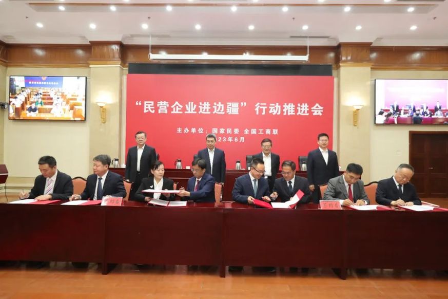 會(huì)議指出,“民營(yíng)企業(yè)進(jìn)邊疆”行動(dòng)是國(guó)家民委、全國(guó)工商聯(lián)以習(xí)近平新時(shí)代中國(guó)特色社會(huì)主義思想為指導(dǎo),深入貫徹落實(shí)黨的二十大精神和習(xí)近平總書記關(guān)于加強(qiáng)和改進(jìn)民族工作的重要思想、關(guān)于民營(yíng)經(jīng)濟(jì)發(fā)展的重要論述精神,動(dòng)員引導(dǎo)廣大民營(yíng)企業(yè)積極參與邊疆地區(qū)建設(shè)的重要舉措。要認(rèn)真貫徹落實(shí)黨中央關(guān)于“加強(qiáng)邊疆地區(qū)建設(shè),推進(jìn)興邊富民、穩(wěn)邊固邊”重大決策部署,深入貫徹落實(shí)習(xí)近平總書記近日在內(nèi)蒙古考察時(shí)所作重要講話精神,堅(jiān)持以鑄牢中華民族共同體意識(shí)為主線,站在強(qiáng)國(guó)建設(shè)、民族復(fù)興的戰(zhàn)略高度加強(qiáng)邊疆地區(qū)建設(shè),扎實(shí)推動(dòng)“民營(yíng)企業(yè)進(jìn)邊疆”行動(dòng),助力邊疆民族地區(qū)高質(zhì)量發(fā)展,讓各族人民實(shí)實(shí)在在感受到推進(jìn)共同富裕在行動(dòng)、在身邊。