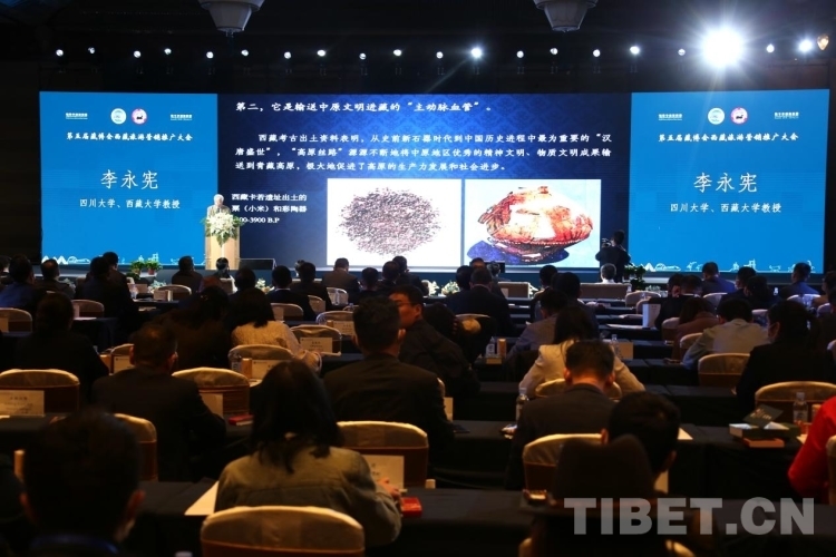 圖為大會現(xiàn)場,四川大學、西藏大學教授李永憲介紹“高原絲綢之路” 攝影:王佳豪