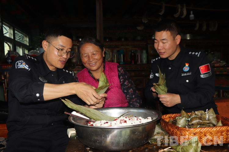 圖為魯霞邊境派出所民警前往轄區(qū)珍噶老人家中開展包粽子活動(dòng) 攝影:伍俊丞