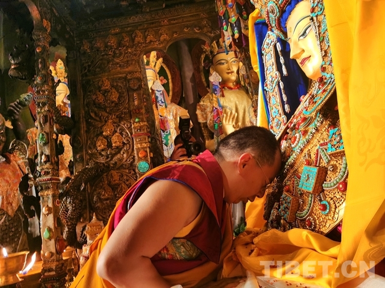 圖為班禪朝拜釋迦牟尼十二歲等身佛像 攝影:格桑