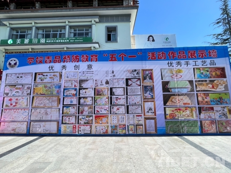 圖為校園毒品預(yù)防教育“五個一”活動作品展示墻 攝影:德吉卓瑪