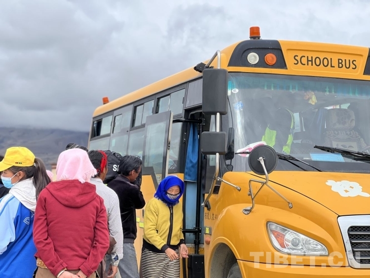 圖為家長(zhǎng)送孩子們上校車 攝影:德吉卓瑪