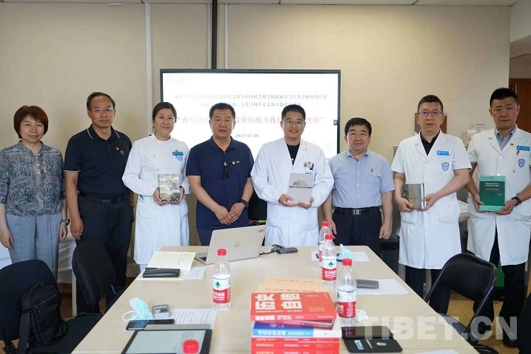中國西藏網(wǎng)訊 主題黨日活動是加強黨的基層組織制度建設的重要抓手,是加強黨員黨性教育的重要方式,是提升基層黨組織生活活力的主要途徑。如何開展好主題黨日活動,是全黨上下各支部一直在認真思考的一項政治任務。在民族團結(jié)工作領域,開展好符合新時代特征的主題黨日活動,既是共產(chǎn)黨員踐行初心與使命的基本要求,也是探索鑄牢中華民族共同體意識工作的新方向。2023年7月6日,中國社會科學院民族學與人類學研究所的應用民族學研究室和學會聯(lián)合黨支部、人類學研究室和學會聯(lián)合黨支部來到北京大學人民醫(yī)院骨關節(jié)科黨支部,與正在該醫(yī)院接受大骨節(jié)病手術(shù)治療的藏族同胞一起開展了一場以“在祖國和人民最需要的地方踐行初心與使命”為主題的黨日活動。