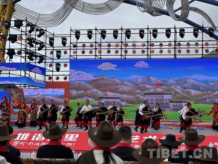 開幕式在莊嚴的國歌聲中拉開序幕。開幕式文藝演出聚焦“堆諧故里,藝術之鄉(xiāng)”,由拉孜縣藝術團、民間業(yè)余演出隊、九大藏戲隊、少兒藝術隊,芒普鄉(xiāng)、扎西崗鄉(xiāng)、柳鄉(xiāng)藝術隊演出藏戲、堆諧、諧欽(“諧”藏語意為歌舞,“欽”即盛況或隆重之意)、洛諧(定日縣為主的南部歌舞)、果諧(圓圈舞)以及區(qū)內知名歌手演唱歌曲組成。整個演出融合傳統(tǒng)民族非遺文化與現(xiàn)代歌舞元素,演出內容既富有傳統(tǒng)特色又極具時代魅力,充分展示了拉孜各族人民昂揚向上、團結奮進、開放包容的精神面貌。