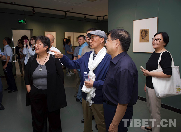 開(kāi)幕式后,各位來(lái)賓在韓書力先生的引領(lǐng)解說(shuō)下,興致勃勃地參觀了展覽。通過(guò)韓書力先生的講解,大家進(jìn)一步加深理解了作品所體現(xiàn)的西藏各族人民積極向上的精神面貌,體會(huì)到了各族群眾淳樸真摯的人生之美,感知到畫家對(duì)那一片高天厚土的真摯情感。