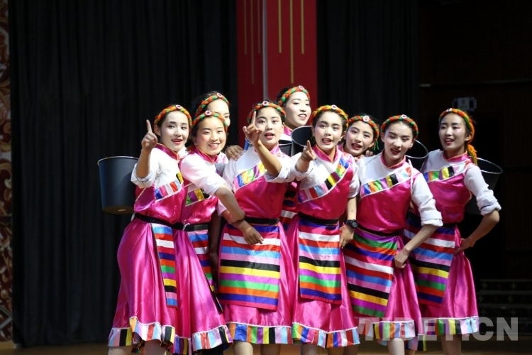 圖為拉薩那曲第二高級中學(xué)的學(xué)生們在文藝比賽中表演節(jié)目 攝影:王佳豪