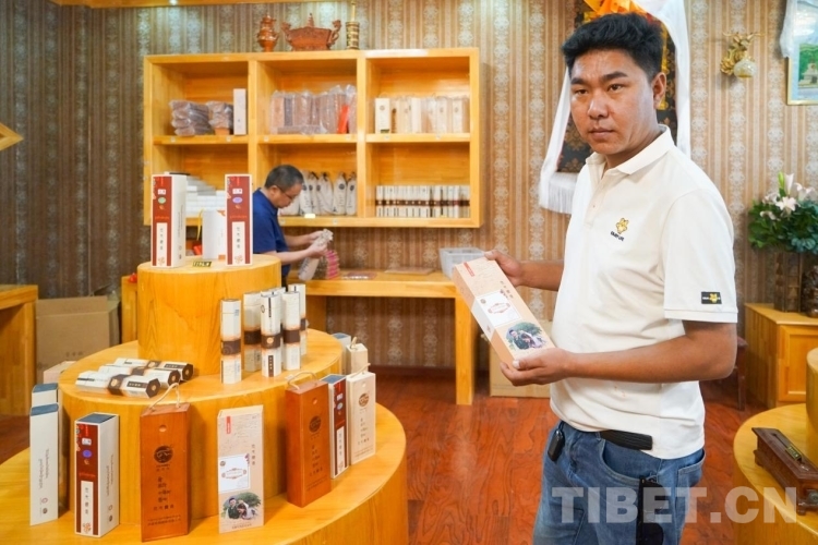 圖為藏香致富帶頭人扎西頓珠和他的電商定制款藏香 攝影:趙振宇