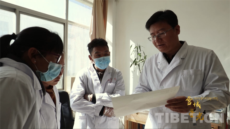 圖為李靖和西藏當(dāng)?shù)蒯t(yī)生交流患者病情 受訪者供圖