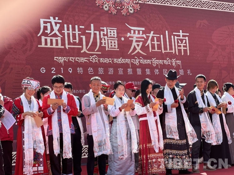 中國(guó)西藏網(wǎng) 9月22日,由西藏山南市人民政府,西藏自治區(qū)旅游發(fā)展廳共同主辦的“盛世邊疆·愛(ài)在山南”G219特色旅游宣推暨集體民族婚禮在山南市乃東區(qū)啟動(dòng)。西藏自治區(qū)旅游發(fā)展廳,山南市旅游發(fā)展局、民宗局等相關(guān)部門(mén)以及各縣(市、區(qū))分管領(lǐng)導(dǎo)和來(lái)自全國(guó)各地的23對(duì)少數(shù)民族情侶、夫妻共同參加了此次活動(dòng)。