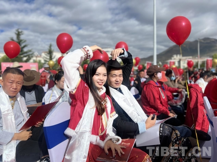 圖為民族團(tuán)結(jié)模范夫妻現(xiàn)場(chǎng)證婚 攝影:德吉卓瑪