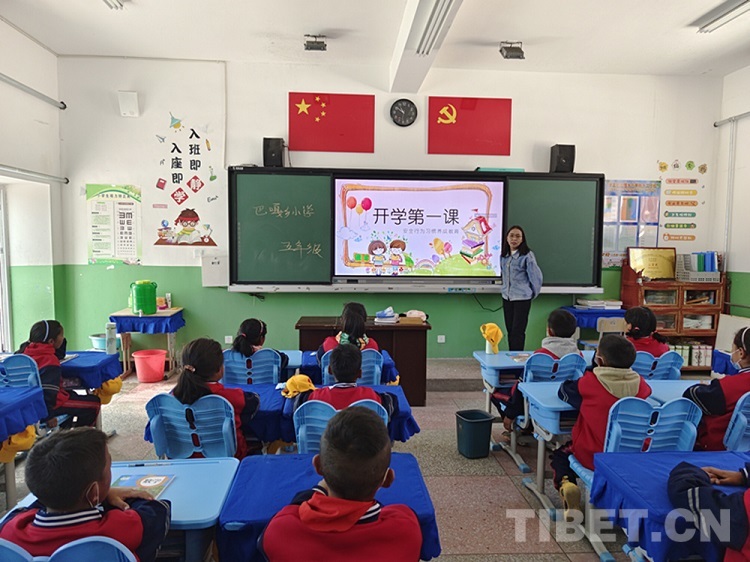 圖為巴嘎鄉(xiāng)小學(xué)開(kāi)學(xué)第一課 圖片由西藏民族大學(xué)財(cái)經(jīng)學(xué)院提供