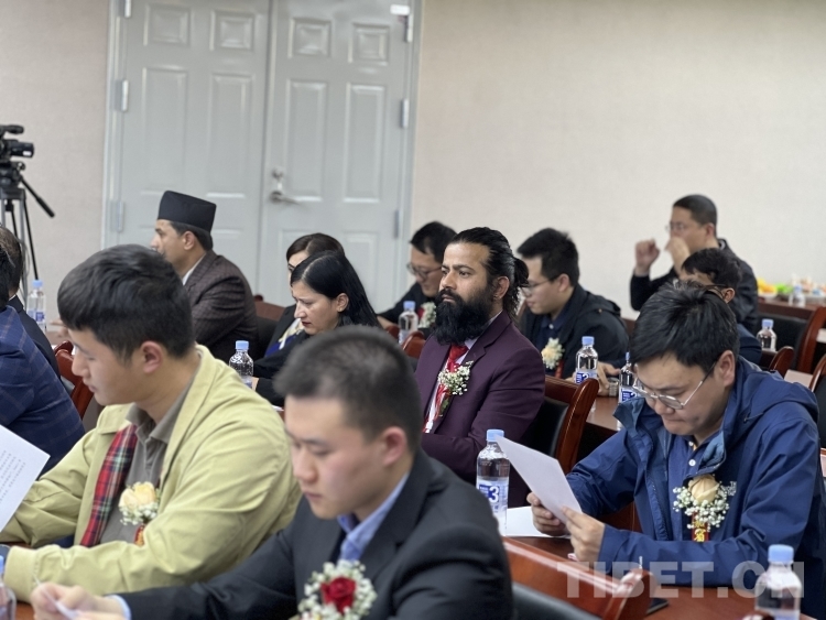 圖為尼泊爾研修班的學(xué)員代表、尼中文教協(xié)會秘書長蒂利普·普拉薩德·阿查利亞在做發(fā)言 攝影:德吉卓瑪