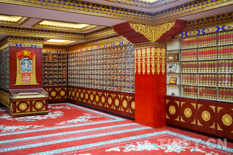 在西藏民族大學(xué)圖書(shū)館的藏學(xué)信息研究中心內(nèi),房間四周精致的藏式書(shū)柜中珍藏著包括德格版、拉薩版、北京版等多個(gè)版本《藏文大藏經(jīng)》,還有法藏、英藏、俄藏、國(guó)家圖書(shū)館收藏的多個(gè)版本《敦煌藏文文獻(xiàn)》,以及《中華大藏經(jīng)》對(duì)勘本、《藏傳佛教高僧弘法手跡珍典》《甘肅青海四川民間古藏文苯教文獻(xiàn)》《中國(guó)藏醫(yī)藥影印古籍珍本》等多種珍本,這些典籍是中華民族傳統(tǒng)文化中璀璨的瑰寶,跨越著時(shí)間和地域與民大學(xué)子進(jìn)行著時(shí)空對(duì)話。