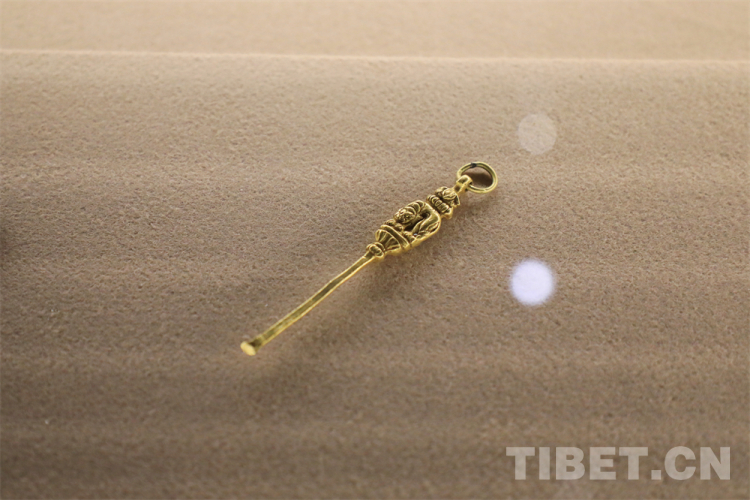 圖為西藏拉薩當雄墓地出土的雄獅鳥紋金耳勺(唐代),雖已過千年仍熠熠生輝 攝影:楊月云
