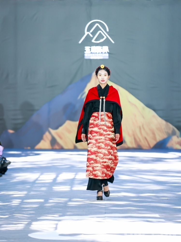 該品牌推出了日沐、星落、風(fēng)挽、云撫、月浮5個系列35套展示服飾,每個系列7套展示服飾設(shè)計都以日喀則的地標(biāo)地點(diǎn)為靈感,呈現(xiàn)出日喀則的自然景觀和文化元素。