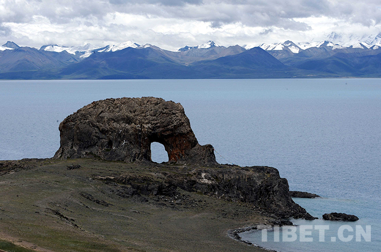 位于班戈縣納木錯北岸的“圣象天門”景觀。遠處是綿延的念青唐古拉山脈(唐召明2012年8月4日攝)