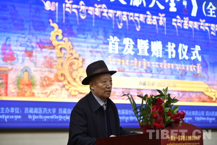 西藏藏醫(yī)藥大學(xué)米瑪校長代表主辦方在致辭中表示,《大全》是集藏醫(yī)藥學(xué)界之力的一項重大成果,以西藏藏醫(yī)藥大學(xué)為例,作為藏醫(yī)藥研究的重要力量,在《大全》編纂整理過程中,先后派駐多名業(yè)務(wù)骨干前往成都喜馬拉雅文庫參與審讀。國醫(yī)大師旺堆教授更是親點20名學(xué)識深厚的中青年教師,組成《大全》的拉薩審讀分部,為全書的高品質(zhì)問世做出了應(yīng)有的貢獻(xiàn)。