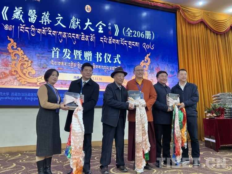 圖為《藏醫(yī)藥文獻(xiàn)大全》捐贈儀式現(xiàn)場 攝影:德吉卓瑪