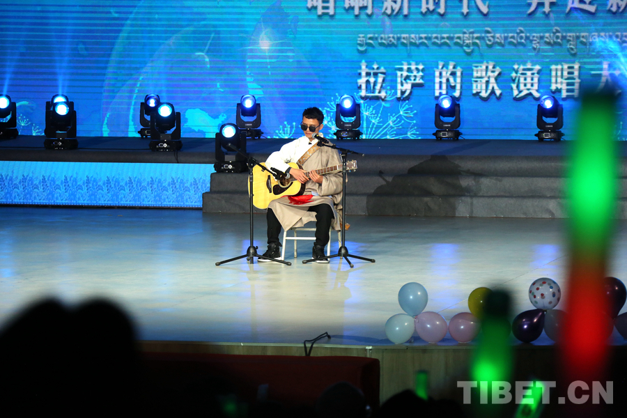 資料圖:視障人士拉巴桑珠就讀于拉薩師范高等專科學校,他在拉薩師范高等專科學校校園“十佳歌手”大賽中獲得冠軍