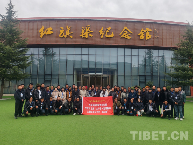 圖為西藏自治區(qū)黨委組織部全區(qū)村(居)主干鄉(xiāng)村治理能力主題培訓示范班走進紅旗渠紀念館學員合影