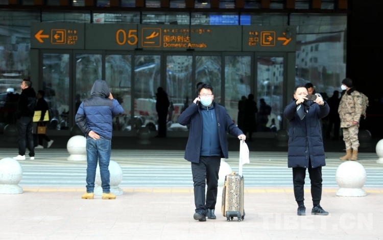 圖為1月26日春運首日,剛剛抵達(dá)拉薩貢嘎機場的旅客 攝影:王佳豪