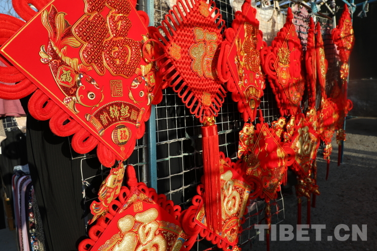 圖為攤位上的新年掛飾 攝影:龍真多吉