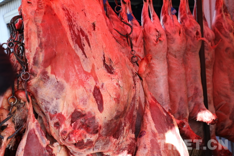 圖為售賣肉類的攤鋪 攝影:龍真多吉
