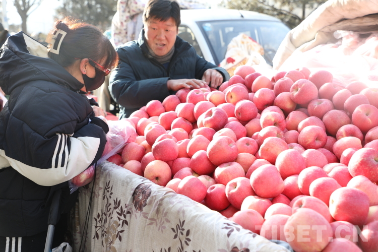 圖為顧客在挑選蘋果 攝影:龍真多吉