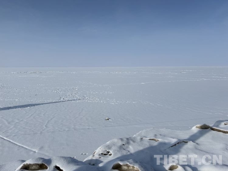 青海湖是我國(guó)面積最大的內(nèi)陸湖泊,湖岸線長(zhǎng)約360公里。落雪后的湖面更是白茫茫一片,極目遠(yuǎn)眺,水與天相接。天地間十分安靜,只余不太溫柔的風(fēng)聲在耳側(cè)呼嘯而過(guò)。偶爾有游人在冰面走動(dòng),在白色的背景下顯得格外醒目。我們的無(wú)人機(jī)好像一只勇敢的沙鷗,翱翔在水天之間。(中國(guó)西藏網(wǎng) 文/李一凡 龍真多吉 張萌萌)