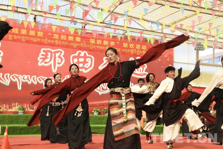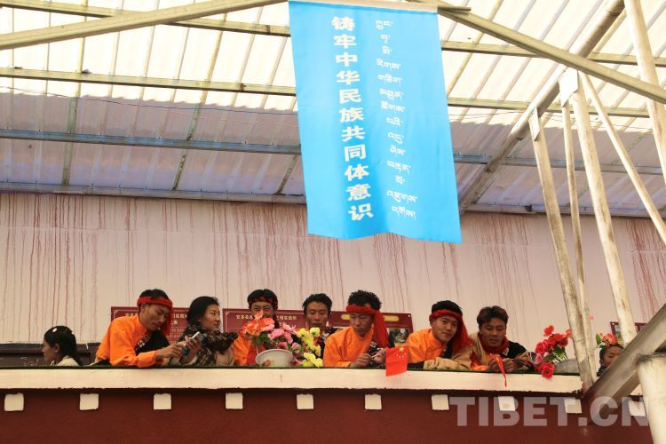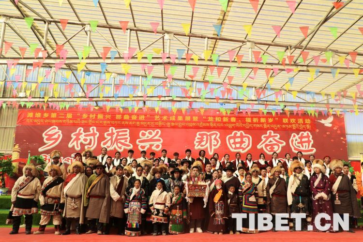 中國西藏網(wǎng)訊 2月10日,中國西藏信息中心“新春走基層”青藏線采訪組一行,來到西藏自治區(qū)那曲市安多縣灘堆鄉(xiāng),適逢當(dāng)?shù)卦谂e辦灘堆鄉(xiāng)第二屆“鄉(xiāng)村振興 那曲奮進(jìn)”藝術(shù)成果展暨“龍和新春、福祈新歲”聯(lián)歡活動。采訪組一行來到鄉(xiāng)政府對面的灘堆鄉(xiāng)文化站,記者在現(xiàn)場看到許多穿著具有當(dāng)?shù)孛褡逄厣椀娜嗽诖司奂?。在好奇心的?qū)使下,經(jīng)詢問當(dāng)?shù)馗刹坎胖?,為喜?024春節(jié)和藏歷新年,感激黨和國家的關(guān)心關(guān)懷,歌頌如今來之不易的幸福生活,鄉(xiāng)村文藝隊特此精心準(zhǔn)備了文藝節(jié)目,以嶄新的面貌和昂揚(yáng)的精神展現(xiàn)新時代牧民群眾的精神風(fēng)貌和幸福生活。