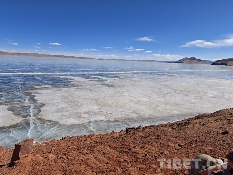 錯那湖湖面海拔4600米左右,面積400多平方公里,是世界上海拔最高的淡水湖,更有冰泡、冰裂、冰推等奇妙的自然景觀。當(dāng)氣溫急劇下降時,水溫也驟降,湖底產(chǎn)生的氣體在上升過程中被凍在冰中,形成許多細(xì)小的白色氣泡,懸浮在厚厚的冰層之中。湖水表面一層被藏北的朔風(fēng)快速凍結(jié)成冰,部分碎冰在岸邊堆積,形成隆起的“冰岸線”。又由于初春晝夜溫差較大,湖冰崩裂,形成網(wǎng)狀的冰裂紋路。這些透明裂紋從岸邊開始,像潮水一樣漫過平地,漫過羌塘草原腹地,漫到天邊,把羌塘大地裝扮成一個冰晶縱橫交錯的世界。(中國西藏網(wǎng) 文/李一凡 張萌萌 龍真多吉)