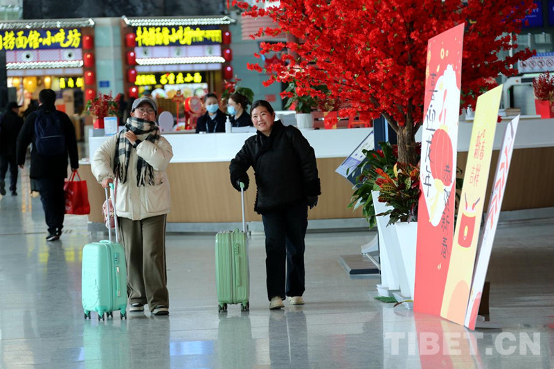 資料圖:拉薩貢嘎機(jī)場內(nèi)節(jié)日氛圍濃厚 游客愉快出行