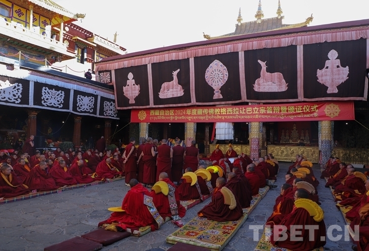 中國西藏網訊 2月28日,西藏自治區(qū) 2024年度藏傳佛教學經僧人考核晉升格西拉讓巴學位立宗答辯暨頒證儀式在拉薩大昭寺舉行。