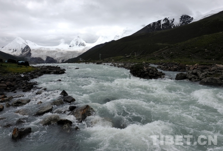 薩普冰川融化后的水流,順著普宗溝奔流而下,成為怒江的一個(gè)支流(唐召明2014年7月10日攝)