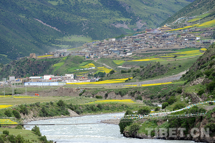 羊秀白嘎風(fēng)景區(qū)的美麗景觀?!疤K毗古遺址群落”就廣泛分布在這里。前面流淌的是杰曲河水(唐召明2014年7月9日攝)