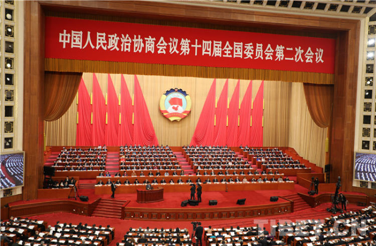 圖為全國政協(xié)十四屆二次會(huì)議第三次全體會(huì)議的現(xiàn)場 攝影:桑吉