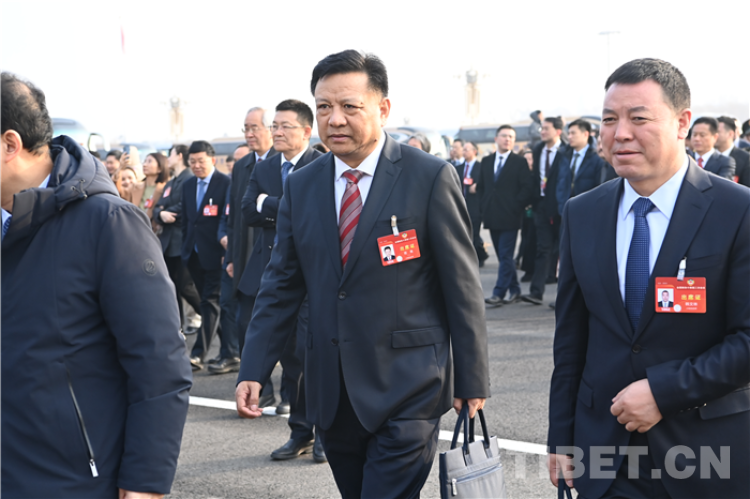 圖為全國政協(xié)委員,青海省委常委、統(tǒng)戰(zhàn)部部長班果前往人民大會(huì)堂