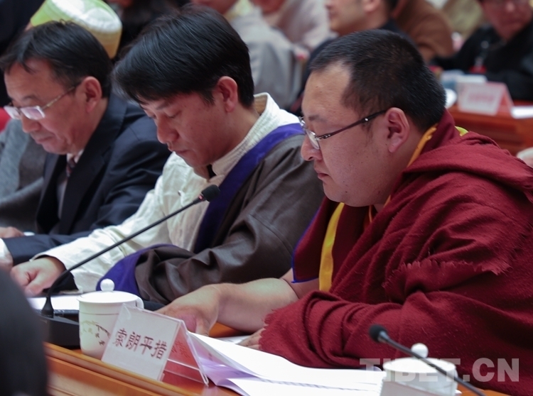 圖為宗教界代表七世熱振活佛熱振·索朗平措(右一)發(fā)言