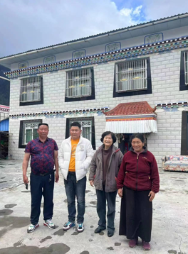 圖為20多年后馬麗華在林芝市永久村再訪(fǎng)阿松(左一),并與他的家人在他家的“豪宅”前合影