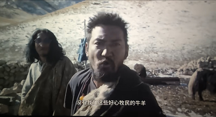 當(dāng)然,影片還出現(xiàn)了許許多多新生事物,蘋(píng)果手機(jī)、平板電腦、紅外攝像機(jī)、挖掘機(jī),微信、BBC紀(jì)錄片,古老的牧人、傳統(tǒng)的生活與現(xiàn)代社會(huì)、科技產(chǎn)品毫無(wú)距離。
