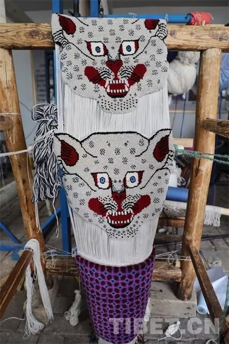 圖為搭在傳統(tǒng)木質(zhì)織架上的藏毯制品 攝影:王茜