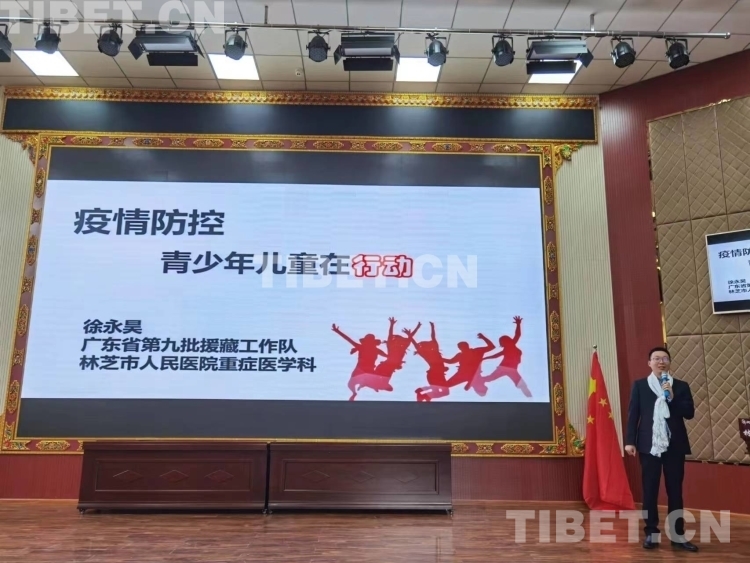 圖為廣東援藏醫(yī)療隊(duì)員給林芝中小學(xué)生作健康講座 圖片由受訪者提供