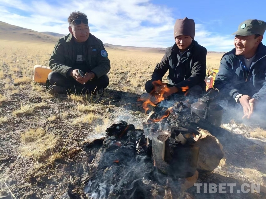 圖為麻木卓瑪管理站站長(zhǎng)洛達(dá)和同事們?cè)谕庋沧o(hù)(洛達(dá)為右一)