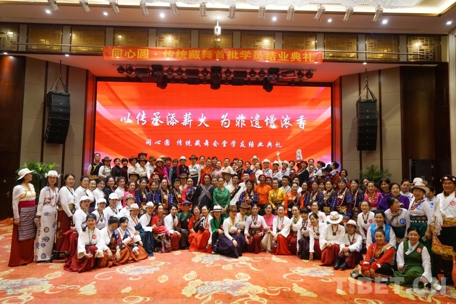 中國西藏網(wǎng)訊 5月9日,由同心圓傳統(tǒng)藏舞會堂舉辦的“為傳承添薪火 為非遺增濃香”傳統(tǒng)藏舞首批學員結(jié)業(yè)典禮在陜西西安舉行。22名學友經(jīng)過一年多的辛勤努力終于迎來了結(jié)業(yè)典禮,同時現(xiàn)場還為9名優(yōu)秀學員頒發(fā)推廣人證書。