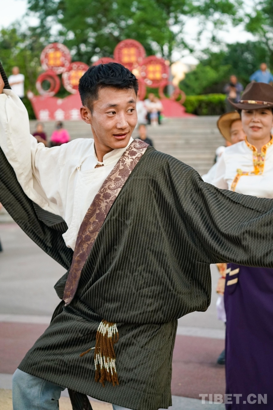 圖為來(lái)自西藏拉薩的藏舞推廣人沙多正在領(lǐng)舞 攝影:陳浩力