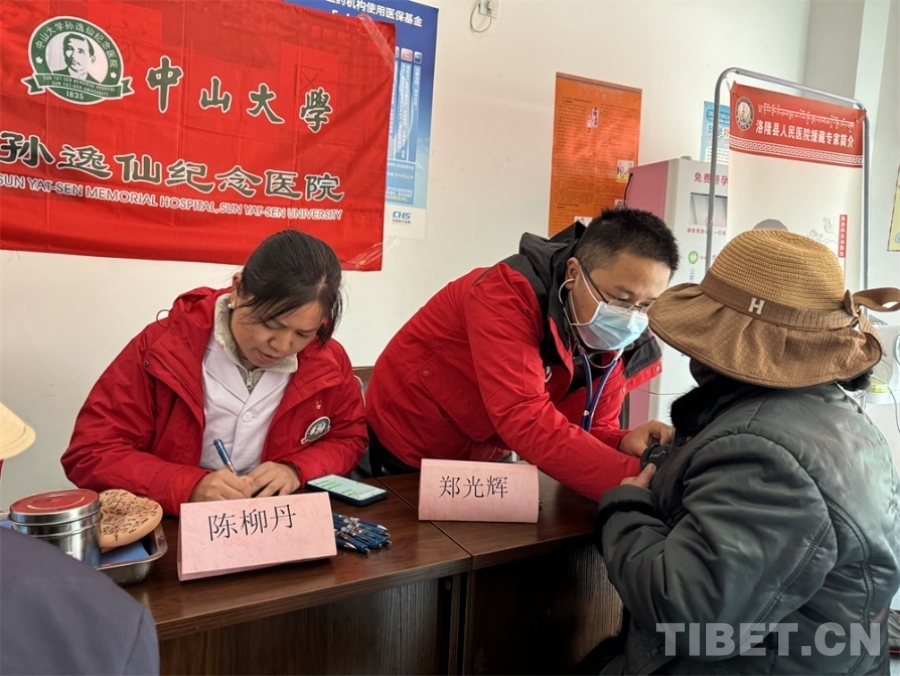 來(lái)自廣州中山大學(xué)孫逸仙紀(jì)念醫(yī)院中醫(yī)科的陳柳丹在義診現(xiàn)場(chǎng)為患者開展了中醫(yī)治療,“今天我們開展的中醫(yī)診療包括穴位貼的貼敷、艾灸治療、平衡火罐之類的,我們想讓洛隆的更多群眾了解急救的知識(shí),了解中藏醫(yī)療法?!?/p>