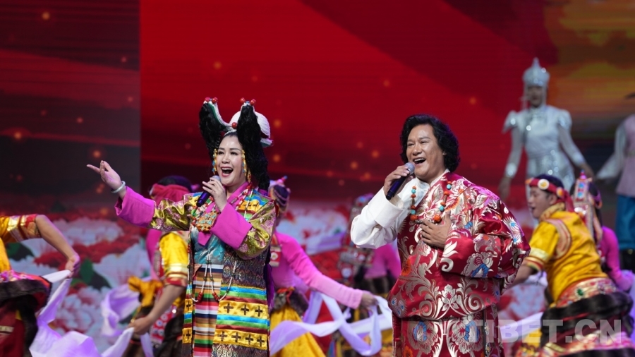 專題演出由開場《祖國萬歲》、上篇《尋夢天湖》、下篇《歡歌拉薩》、尾聲《扎西德勒》四個部分構(gòu)成。通過充分挖掘拉薩的民俗風(fēng)情,將藏族歌舞、傳統(tǒng)說唱藝術(shù)等元素巧妙地融入其中,用視頻展示的自然風(fēng)光、人文景觀作為輔助,優(yōu)化舞臺布局設(shè)計,巧妙布景,為觀眾營造一種身臨其境的感受,共同創(chuàng)造出一個充滿歡樂與感動的氛圍,力圖讓更多的人了解拉薩、愛上拉薩,感受這座城市的獨特魅力和文化內(nèi)涵。此外,還邀請了容中爾甲、四郎貢布、次仁桑珠、益西卓瑪?shù)妊菟嚱缛耸抗嬷囇莩?,進(jìn)一步豐富和活躍專題演出氛圍。