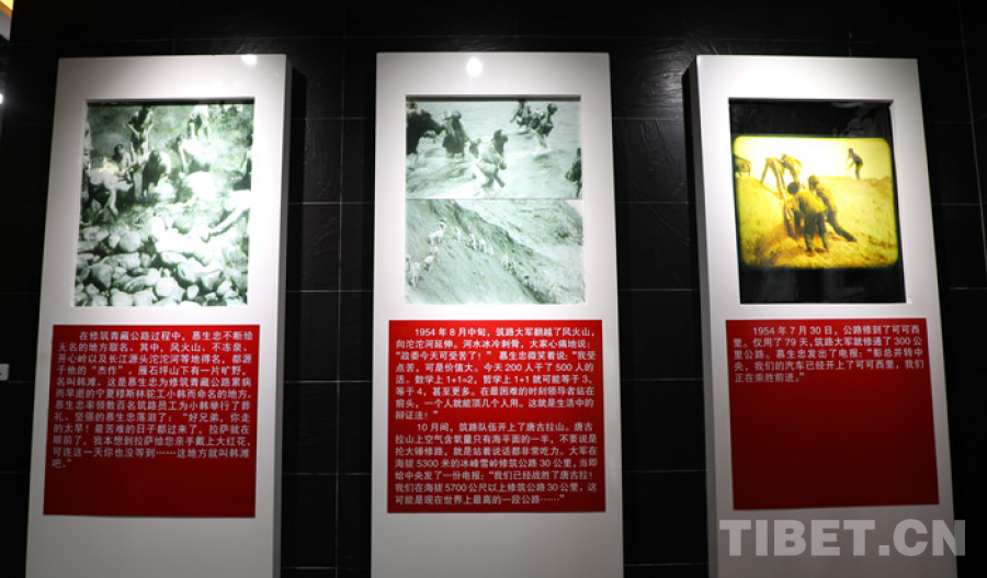 圖為青藏公路紀念館中展出圖片:筑路人員正在施工 翻拍:王茜