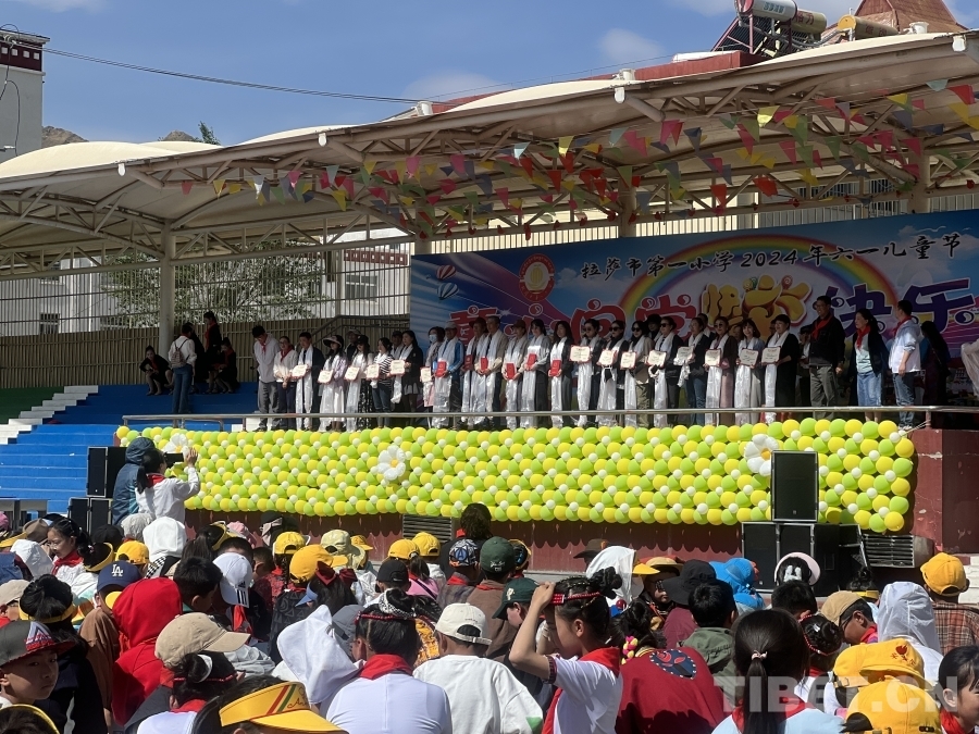 中國西藏網(wǎng)訊 初夏的拉薩陽光明媚,天空湛藍(lán)。走進(jìn)西藏自治區(qū)拉薩市第一小學(xué)江蘇路分校,映入眼簾的是溫馨漂亮的校園和師生共慶“六·一”國際兒童節(jié)的熱鬧景象?!巴南螯h 快樂成長”六一文藝匯演精彩節(jié)目正在演出。